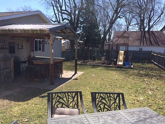 Just under half acre home site in Flora, private fenced in area, paver patio with a covered outdoor bar and entertainment area. Open concept kitchen with a dining and living room, three bedrooms and 1 1/2 bath with jetted tub, 2 car detached garage with plenty of additional parking.