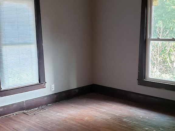 Newer vinyl siding, newer vinyl windows. 2 car garage and a separate 1 car. House could use some work but has potential.