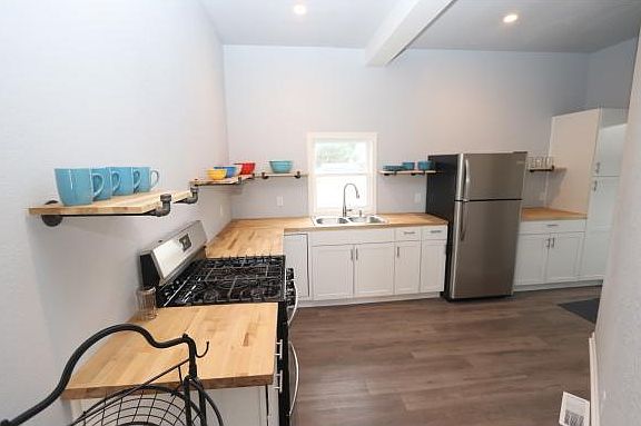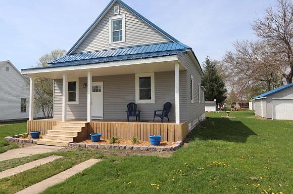 This completely remodeled two bedroom bungalow has large dining room, living room and bedrooms. The remodel includes but is not limited to: Roof, siding, furnace, air, electrical, plumbing, flooring, drywall, deck, porch and all fixtures. Please view the pictures and video to get an idea of the work that has been completed or better yet call a realtor for a showing. This home also offers a partial basement, large lot and a one car detached garage. Lot line on East side goes directly through the middle of the two car garage. Only half the garage is on this property.