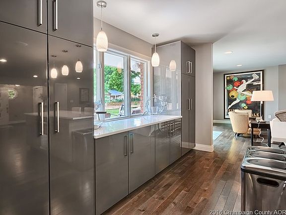 SIMPLY THE BEST! Stunning contemporary ranch home located on a quiet cul-de-sac. This home offers everything sought after by today's urban professionals; high end contemporary finishes, designer kitchen with custom cabinetry, quartz counter tops, tile back splash, GE cafA series stainless appliances. Living and dining area with open floor plan, hardwood floors, new patio door and fabulous fireplace. Spacious master bedroom suite has state of the art shower, sinks and dressing area. Basement is partially finished and the two way fireplace adds warmth and charm. Expansive deck overlooking one of the largest fenced yards in Urbana. Unfinished basement for storage plus a storm or wine cellar. Rigorous attention to detail and superior quality is found throughout this totally renovated home.