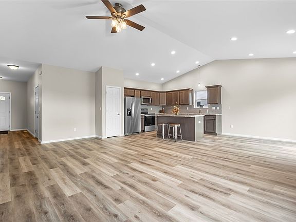 Newly constructed 3 bed, 2 bath, 1,450 sf ranch home in Anamosa! This well-constructed and open-design floor plan features a modern interior with an expansive great room with vaulted ceiling. Off the great room is a dining area and spacious kitchen with centrally placed kitchen island, tile backsplash, soft close cabinets, stainless steel appliances and a spacious pantry. The roomy master bedroom offers an ensuite bathroom and walk-in closet. The main level also has 2 additional bedrooms, additional full bathroom and a laundry room just off the master bedroom. The walkout lower level has lots of potential and natural light. You could add a family room, 2 more bedrooms or offices and a full bathroom and still have space for storage! The 2 stall garage has a floor drain and there is a shed in the back for additional storage. Option to finish a deck of your choosing. Second 24x30 garage on an adjoining 50x60 lot with OSB walls and ceiling, finished attic, electricity and garage door opener. Can be negotiated into the sale. *Seller offering a $5,000 credit towards a new deck* Welcome Home!