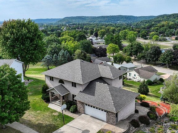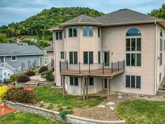Discover luxury living in this exquisite executive home in LaCrescent MN boasting approx 4,200 sf of meticulously designed space. Nestled amidst the picturesque backdrop of the Mississippi River & the stunning MN Bluffs, this property is one-of-a-kind. The unique architectural design sets this home apart w/ the spacious open floor plan offering 4 generously sized bedrooms & 3 1/2 bathrooms.The master bedroom is a true sanctuary, featuring a sitting area that has breathtaking views. This Parade of home WINNER also includes a home office space, formal dining rm, large storage rm & stylish wet bar. The deck & paver stone patio are perfect for entertaining friends or simply enjoying a peaceful evening view. Schedule a private tour & see why this is the home you've been dreaming of!