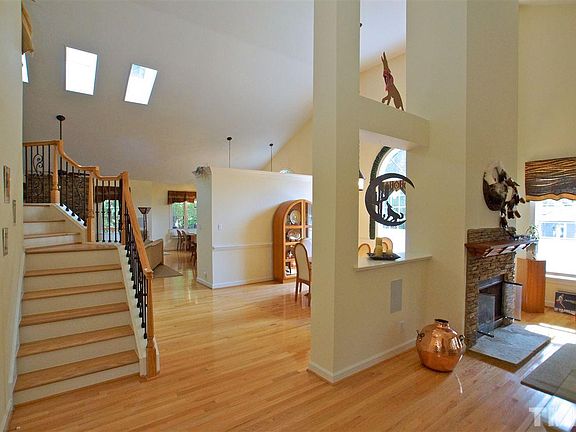 HARD-TO-FIND 0.79 ACRE FLAT WOODED LOT IN CARY! Desirable Estblshd Nghbrhd W/MATURE HRDWD TREES, Sidewalks & Greenway. 3-SEASON RM W/Stone FIREPLACE, Expansive DECK - watch f/birds! Jaw-dropping Kitchen Makeover w/highend appliances! 1st FLR MSTR, REMODELD BATH, CSTM CLOSETS & LAUNDRY. UPDATES include Roof 2017, HVAC 2019, 2017, Tankless Waterheater, NEW Light fixtures, Shower Enclosure, Interior Paint, Velux Skylight, Irrigation system. WALK-TO-HIGHCROFT ELEM, SearsFarm Park & Pool/Clubhouse. MUST SEE!