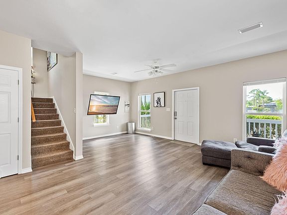 Welcome to this beautiful neighborhood offering a 2 story home with 3 bedrooms, 2.5 baths, 1st floor primary bedroom, 2020 SS appliances, washer/dryer included, new LVP in main living area, walk-in closets, plenty of natural light, quaint front porch for sunsets, side patio for grilling and backyard is woods filled with wild life The neighborhood pool is great for those hot summer days. Ride your bike to gorgeous 30A beach 3 miles away or drive a golf cart 1 mile to Grand Boulevard for shopping, live entertainment, local market on Saturdays, amazing restaurants, movie theatre, Sacred Heart hospital and Grand Fitness gym. Launch your paddle board or kayak in to Hogtown Bayou just around the corner. HOA covers lawncare and community swimming pool.
