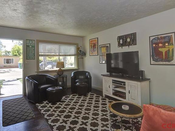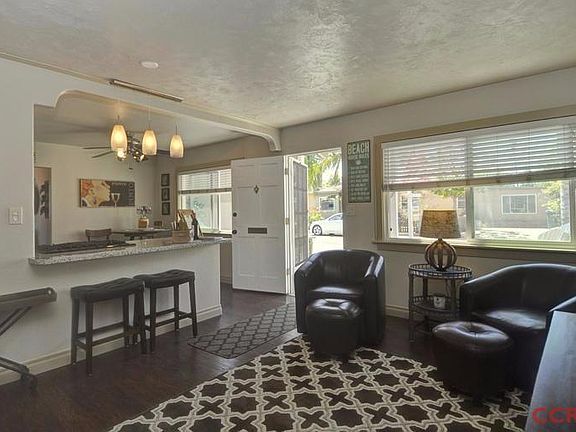 This is the ultimate beach cottage by the sea. Absolutely darling and loaded with character. This 2 bedroom, 1 bath has been completely updated and is just 1/2 a block to the water. Features include laminate and tile floors, granite countertops, stainless appliances, all new fixtures and dual pane windows. Extensive landscaping with artificial turf, lit palm trees, stone drive and pathways and more. There is a delightful patio and yard space out back as well as a firepit and Tiki bar. This adorable home in sold fully furnished including accessories. All you do is walk in and enjoy Shell Beach life! Walking distance to restaurants, parks, coffee houses and the beach. Great rental potential for those doing a 1031 Exchange. This will not last long.