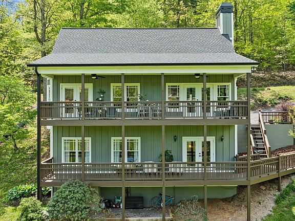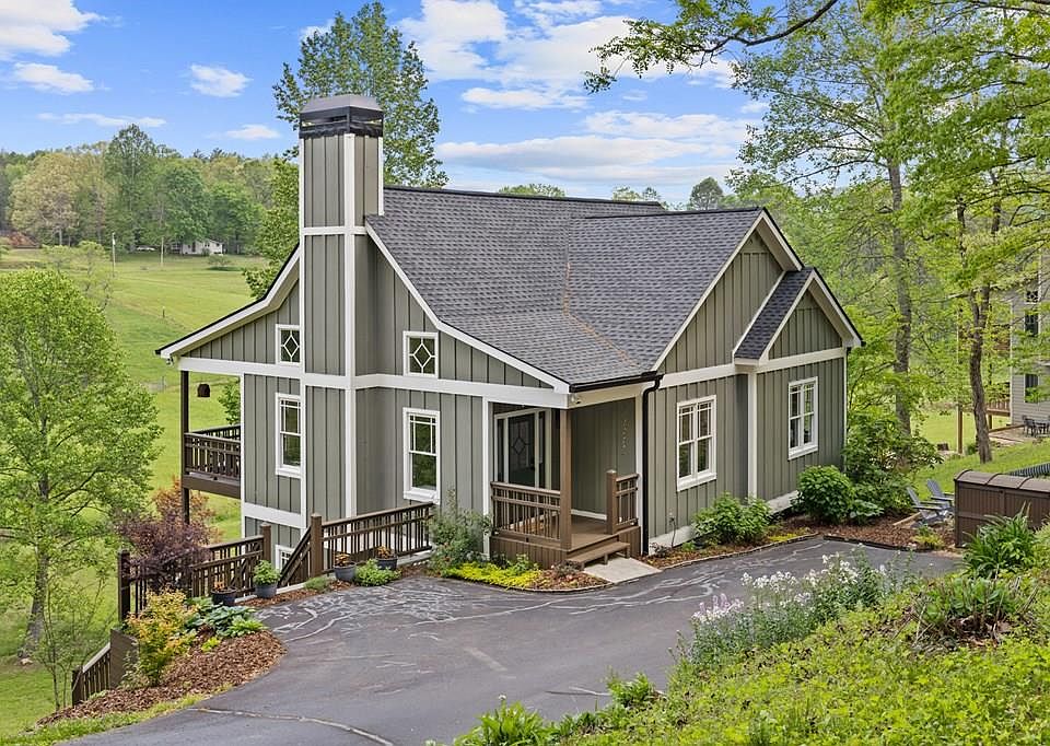 Enjoy the many recent updates throughout this striking light-filled custom home situated in total tranquility. You must experience this home in person! On the main level, a large primary suite features a brand new, luxurious tiled bathroom and ample closet space for your favorite things. Modern appliances, granite countertops and a full-height backsplash with under-cabinet outlets and an island complete a kitchen that flows perfectly into the dining space and open living room centered on a large, cozy stone fireplace. under lofty vaulted ceilings decked in warm tongue-and-groove wood. Indoor/outdoor living on a large covered deck and a convenient half bath round out the main floor's excellent entertaining layout. Lower level with additional bedroom for the perfect guest accommodations, full bathroom, large bonus room, large family room, loads of storage space, and another level of ample deck space for enjoyment. Solid Timberlake Homes custom construction with freshly painted durable Hardie board siding with fully encapsulated crawl space below the lower level. Double decks and luscious landscaping will help you enjoy the daily rhythms of nature near the winding creek. Savor the changing seasons on this serene property with views of the rolling mountains below Brasstown Bald, Georgia's highest summit. Recent improvements include roof and gutters (2022), all bathrooms (2023-2024), dual-zone HVAC (2023), hickory hardwood floors (2021), laundry room (2023), exterior paint & stain (2024), kitchen counters and island (2023). Nestled in a small community with a paved road and simple restrictions. Under 10 minutes to downtown Hiawassee's many conveniences and amenities, including Lake Chatuge. A short drive to fantastic trails, most notably the Appalachian Trail. With short term rentals allowed, this versatile property can be income-producing, or just enjoy it yourself. Make this Blue Ridge Mountain home your perfect basecamp to embrace all that this area has to offer!