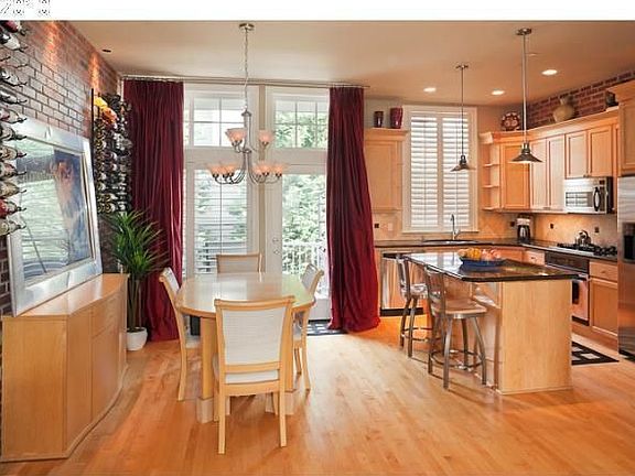 Beautiful townhome with many upgrades. Brick wall in dining room and kitchen gives you the look and feel of loft living, maple floors, slab granite, wine refrigerator, full surround sound, beautiful stone accents. Immaculate 3 Bedroom 3 1/2 bath townhouse with an attached 2 car garage in the heart of downtown Lake Oswego across the street the farmer’s market, coffee shops, parks, and restaurants. Featuring a gourmet kitchen with granite and stainless appliances. You'll love the soaring ceilings and great light, hardwood floors, gas fireplace and gorgeous black slate heated flooring. The lower level bedroom suite has a walk-in closet and 3/4 bath, the upper has 2 bedroom suites with full baths and walk-ins.