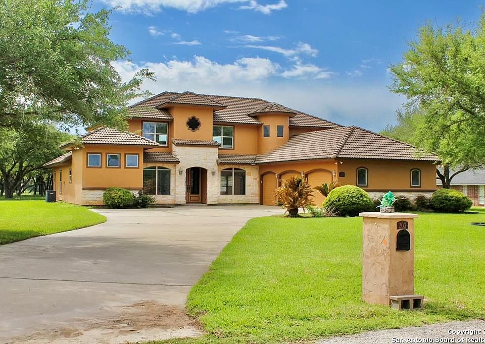 Nestled adjacent to the scenic Beeville Country Club golf course, this elegant stucco residence exudes luxury on its sprawling 1-acre lot, adorned with lush trees. Enclosed by iron fencing and white rock columns, the vast backyard offers a serene retreat. Upon entry through exquisite double doors, you're welcomed into a two-story living room flooded with natural light. The dining area features open archways, while a study awaits through French doors. The expansive kitchen impresses with double islands, custom oak cabinetry, and polished concrete counters. The primary suite opens to a covered patio and boasts a gorgeous en-suite bath with a "curved wall" shower and garden tub. The second level features a living area with a built-in bar, a bedroom with an attached bath, and a large closet. With 3 bedrooms and 3.5 bathrooms, plus a 3-car garage and other amenities, this meticulously designed home is simply ideal living in Fairway Ridge, Beeville.; Original MLS#: 113023; Buyer Name: Brennan; Appliances: Icemaker, Water Purifier System; Deed Restrictions: ; Features: Porch-Covered; Gas Co: Reliant; Home Warranty: No; Land Dimensions: 1 acre; Property Condition: Excellent; Property Exclusions: N/A; Room List: Formal Dining; Septic Size: 1000; Showing: Appointment Needed; Water District: No; Water Heater: Natural Gas; Water Heater Gal: 40; Windows: Double Hung; Zoning: Residential