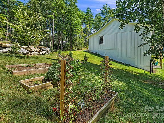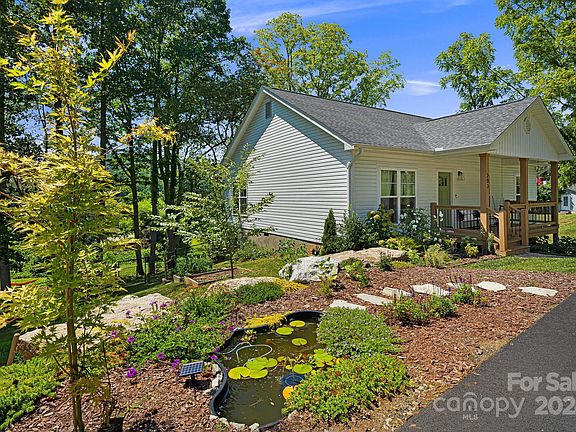 Back on Market due to no fault of sellers. Schedule a showing today! Welcome home to charming single-story living, ideally situated for those who appreciate nature while enjoying easy highway access. This home has an elegant boho feel, thoughtfully designed by the owners in 2022 when the home was built. The primary suite includes a generous walk-in closet with custom shelving and its own private bathroom. With a separate laundry room/pantry and two more bedrooms, the space is allocated with efficiency in mind. Step outside onto the spacious deck to take a peek at the mountains and overlook the large fenced in yard. Walk up the side of the home to see the raised garden beds or sit by the peaceful little pond in your new front yard! The location is ~15 minutes to downtown Asheville & ~30 minutes to Hendersonville. Truly a rare find!