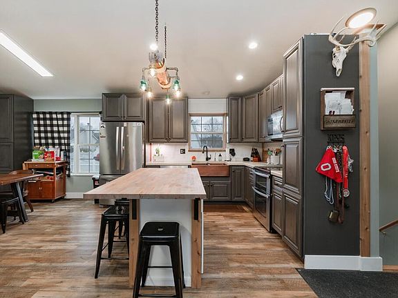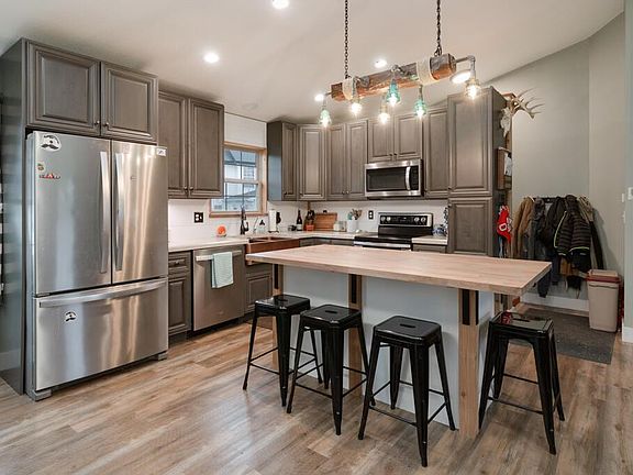Welcome to this charming bi-level home that sits in the best location- close to downtown, back of a cul-de-sac & an oversized lot! As you enter, you are greeted by an open floorplan that effortlessly connects the living, dining, & kitchen areas. The renovated kitchen stands as the heart of the home, boasting custom cabinetry, stunning apron sink & an oversized butcher block island. Natural light floods the space, accentuating the warm tones of the new LVP floors throughout the home. The primary suite is a sanctuary of relaxation, featuring ample closet space & a beautifully renovated en-suite bathroom. BONUS- the oversized, attached garage is heated! You must see this rare floorplan in person to appreciate everything this home offers!