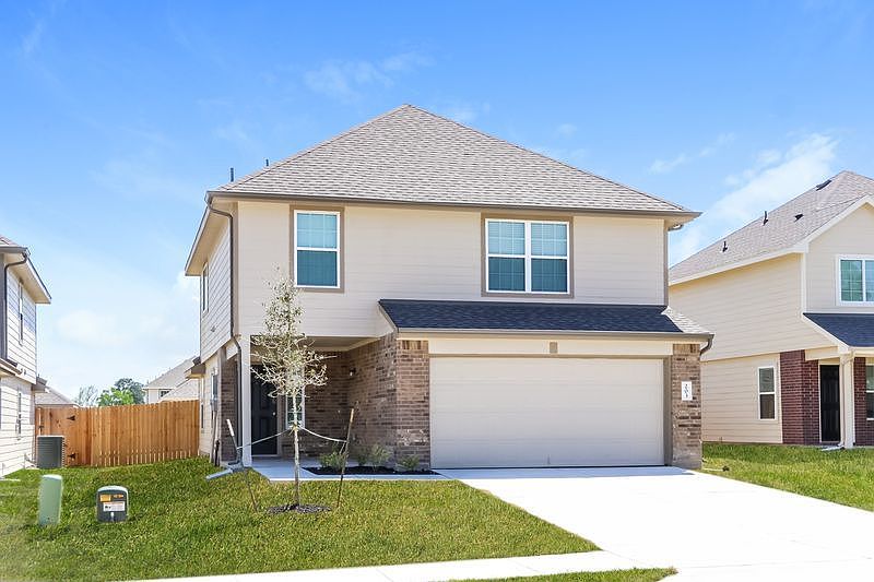 The Miguel Plan offers style and comfort in a spacious two-story layout with 3 bedrooms and 2.5 bathrooms. Enjoy open-concept living with a bright family room, modern kitchen, and dining area—perfect for entertaining. Upstairs features a luxe primary suite with spa-style bath and walk-in closet, plus two more bedrooms and a convenient laundry room. Outdoor living shines with a covered patio and fenced backyard. Extras include vinyl plank flooring, a two-car garage, and smart design throughout. SimplyMaintained service covers lawn care and pest control for just $100/month.