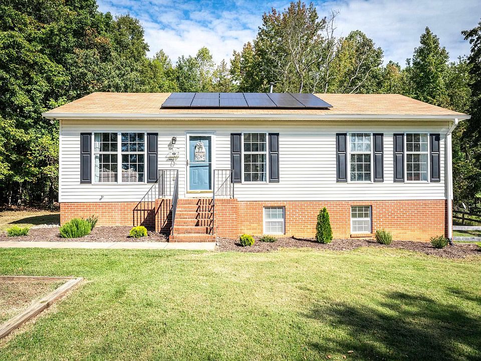 This RECENTLY RENOVATED 4-bed 3-bath RANCH with FIREFLY HIGH-SPEED INTERNET, NEWER HVAC, FULL WALK-OUT BASEMENT, and TWO PRIMARY SUITES is pristinely situated on 5.03 PRIVATE ACRES! Bask in the ENERGY SAVINGS that the NEWER ROOFTOP SOLAR PANELS provide and prepare meals in the UPDATED EAT-IN KITCHEN, featuring forest green cabinets, modernized hardware, flawless backsplash, stainless steel appliances (including a luxurious gas range!), and spacious pantry! Rest easy either in the FIRST FLOOR PRIMARY SUITE, featuring a remodeled ensuite bathroom and walk-in closet, or within the LOWER-LEVEL PRIMARY SUITE featuring two closets, one being an expansive WALK-IN CLOSET ROOM, and enjoy a very large GLASS AND TILE SHOWER with 2 WATERFALL SHOWER HEADS! Entertain friends on the 10'x5' BACK DECK while allowing your pet to roam free within the FENCED-IN BACKYARD! Establish a garden in the SUNNY, LEVEL FRONT YARD and store your tools in the LARGE SHED! Located just 5 minutes from Zion Crossroads shopping, 20 minutes from Charlottesville, and 30 minutes from Short Pump Mall! SUNDAY 10/15 11AM-1PM!