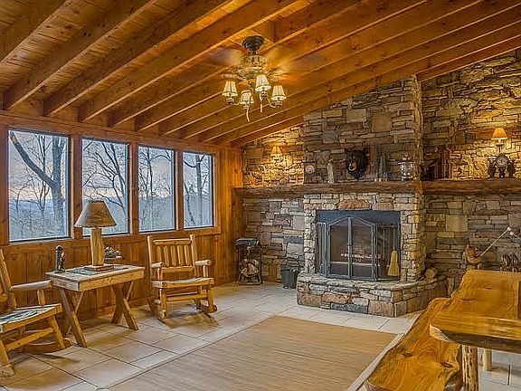 Your Mountain Lodge w/ Unmatched Views and ALL the Upgrades . This 4 Bed/ 3.5 Bath Cabin Boasts an Open Floor Plan w/ a Dramatic Entry into the Home w/ a Floor to Ceiling Stone FP & a Wall of Windows for Breathtaking Views, Gourmet Kitchen w/ Custom Cabinets. Main Floor Master w/ a Huge WIC, An On Suite w/ Double Vanities, Corner Jacuzzi Tub w/ VIEWS and Walk in Shower. Upstairs you will Find A Giant Loft , 2 Bedrooms w/ a Jack & Jill Bath & a Bonus/4th Bedroom. Finished Basement w/ a Rec Room, Wet Bar, Bath & Unfinished Area that Could be a Mother in Law Suite. Outdoor Entertainment Area, Outdoor FP , 2 Levels of Huge Decks, Private Lot & Paved Driveway, 2 Car Carport, & Minutes to Town.