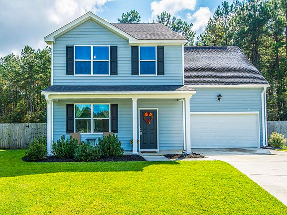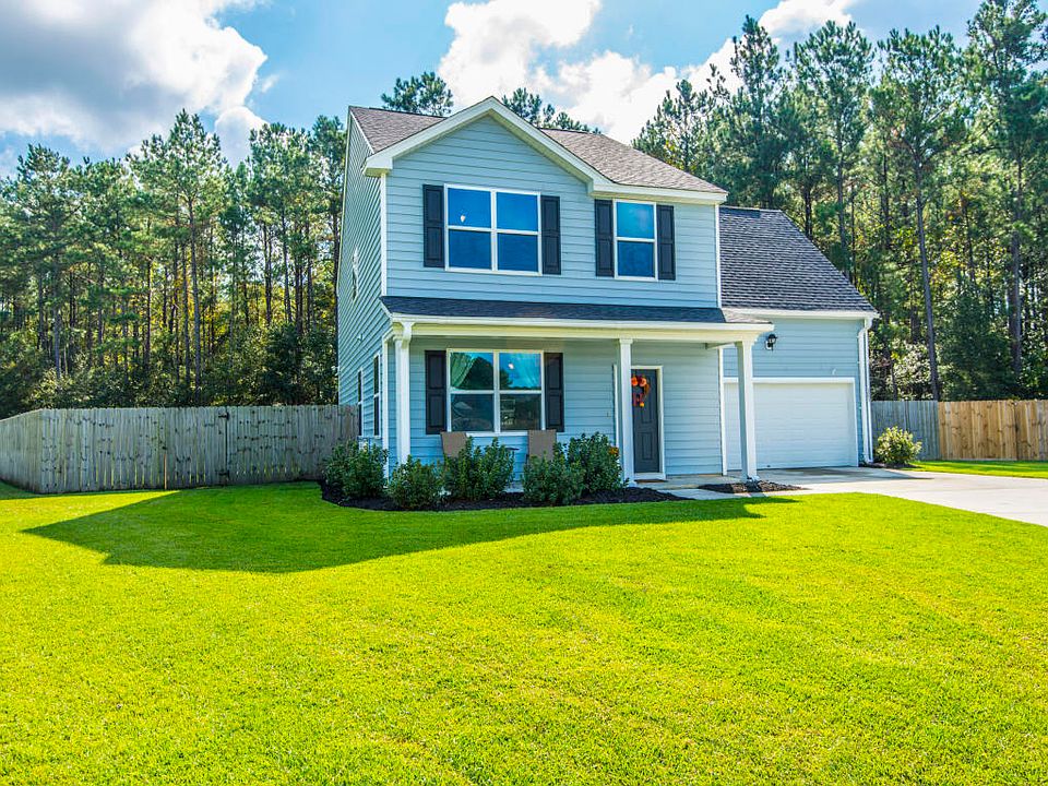 This beautiful 2 story home sits on a large tranquil and private cul-de-sac lot that backs up to the Francis Marion Forest. This home has approx. 2 022 sqft of perfect living space which includes a great family room a gas fireplace with a slate hearth and wood mantle a MUST SEE gourmet kitchen with granite countertops tile flooring and freshly painted walls. This kitchen features canned lighting a large pantry large stainless steel sink and shiny stainless steel appliances. Upstairs the spacious master bedroom has a tray ceiling and a large window for plenty of natural light. There is also a sitting area and large walk-in closet. The master bath has double sinks with high-end cabinetry and granite countertops ceramic tile an over-sized soak tub and walk-in shower. The first guest bedroom is spacious and bright with a large closet. The second guest bedroom looks out onto the beautiful private backyard. The third guest bedroom is spacious and has vaulted ceilings with a large window to let in plenty of light. The guest bath is perfect in size and features maple cabinets and a ceramic tile floor. Additionally the house includes hardwood floors downstairs a downstairs half bath and an oversized full 2 car garage. The home includes a large patio that overlooks a huge private fenced in back yard with plenty of space for boat storage gardening and a play area. The home is in an 'X' flood zone which requires minimal to no flood insurance. The amenities include a community pool and club house and is only 8 miles off of Clements Ferry Rd; 15 minutes to Mount Pleasant 30 minutes to Moncks Corner and 25 minutes to I-526. Also there will be a large new grocery store and Hardware store opening soon close by on Clements Ferry Road. This Beautiful home is a gem nestled in a quaint and friendly area yet convenient to everything!