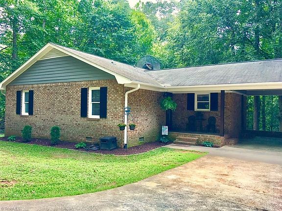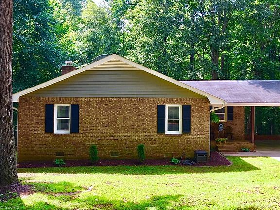 Beautiful brick-privacy-great neighborhood-SO MANY UPGRADES! Fresh ext paint, fresh Kit/DR remodel w/ sparkling granite, crisp white cabinetry, pantry, updated Mst bath, new plush carpet on main, passive solar heat/hot water, BIG laundry, den, office or play room & 2 unfin ample storage rm's in bsmt. Nicely l'scaped 1.13 acre wooded lot offers 10x8 adult playhouse (set up as bar) surrounded by covered pergola, fire pit/comfy seating area makes for GREAT parties and family time!! Lg bldg doesn't stay.