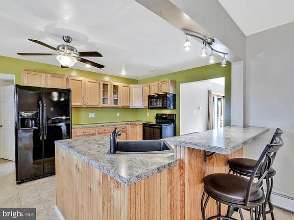 Charming 2BR/1BA single in Tri-Valley School District. The star of this home is the beautifully updated large kitchen fully equipped with all appliances, loads of counter space, recessed lighting, plus two separate bar/counter areas for in-kitchen dining. The kitchen opens to both the adjacent dining and living rooms, perfect for entertaining and family gatherings. Up the staircase are the two nicely sized bedrooms, both with low maintenance laminate floors. Outdoor enjoyment is easy with the rear patio and large, fully fenced in yard. Other amenities include replacement windows, off-street parking in both the front and year, and walk-up attic for extra storage.