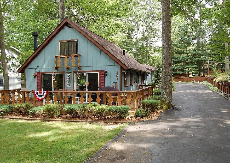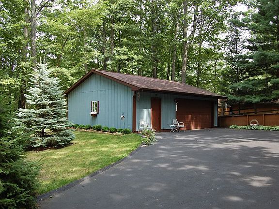 Boat docking comes with this 4 bedroom chalet style home in Higgins Lake, includes landscaped large lot, blacktop drive, detached 2.5 car garage & is only a short walk to association beach with 246' frontage.