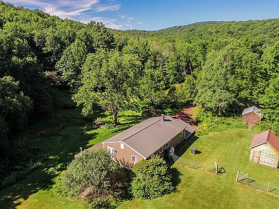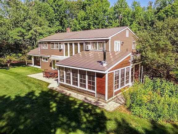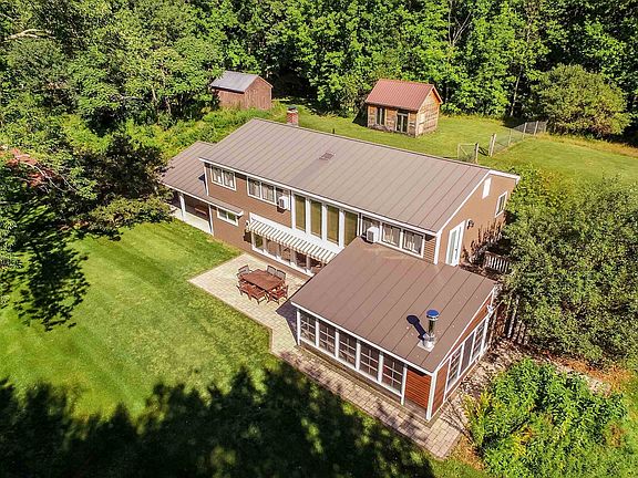 This property is like a breath of fresh air in every sense. Total privacy surrounds the home with the lush greenery that Vermont has to offer along with easy access off from this town maintained road. The vision of the previous owners on how a home should feel has been expressed with the tasteful additions and renovations. The home was designed by architect David Wright as a Passive Solar home given its two story wall of south-facing glass, north sided berm, leaving only one story exposed to the elements, along with the seven inch walls allowing for desired efficiency. The open floor plan has been enhanced by the rough-sawn timbers on the ceiling along with the fabulous glass placements allowing the outside to penetrate the home. The kitchen is a chefs delight, with the floor to ceiling hickory cabinets, green slate island, butcher block countertops, six burner commercial gas range, along with great prep areas. The living room is very inviting with the gas fireplace and exposes the open view into the second floor. Off from the dining room a new sun room was added, offering wrap around windows, wood burning fireplace, access to the patio, along with the kitchenette for entertaining ease. The first floor also has a 3/4 bath, laundry room, enlarged mud room and access to garage. The second floor offers 3bdrms, bright office and full bath. Twelve acres of the forested land is an active maple syrup producing sugar bush. A home with a unique impression, and a style all of its own.