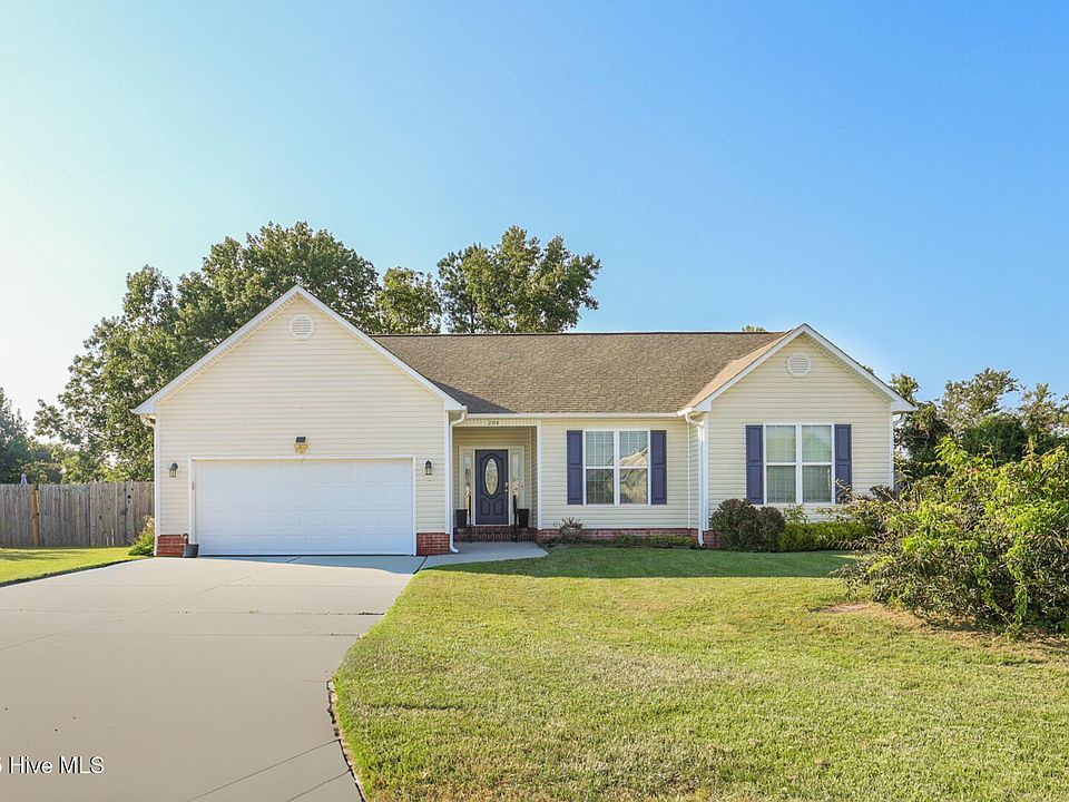 Seller offering $10,000 use as you choose allowance!!! Welcome to 203 Grafton Court, Jacksonville, NC 28540 - A Stylish Haven in Winchester Estates. Nestled in a quiet cul-de-sac in the desirable Winchester Estates community, this beautifully maintained 3-bedroom, 2-bathroom home offers the perfect combination of comfort, elegance, and functionality. Step inside to discover luxury vinyl plank (LVP) wood flooring that flows seamlessly throughout the home, setting the stage for the warm and inviting neutral color palette. The open-concept living area extends into a flexible secondary living space, ideal for a home office, sunroom, or reading nook—designed with lifestyle versatility in mind. The thoughtfully designed kitchen is a true standout, featuring granite countertops, a sophisticated marble tile backsplash, undercabinet lighting, a large stainless steel sink, and a breakfast bar for additional seating. There's also plenty of room for a full-size dining set in the eat-in kitchen. Conveniently located just off the kitchen, the laundry room offers upper cabinetry for added storage and organization. Retreat to the spacious primary suite, complete with a gorgeous hard-surface vanity in the en-suite bath and ample closet space. Two additional bedrooms provide comfort and flexibility for guests or family. The guest bathroom mirrors the same stylish finishes, offering a cohesive and upscale feel throughout. Step outside to enjoy the spacious open deck—perfect for grilling or relaxing—that overlooks a fully fenced backyard, providing privacy and space for outdoor enjoyment. Located just minutes from local shopping, schools, and Camp Lejeune, this move-in-ready home checks every box for convenience, quality, and charm.