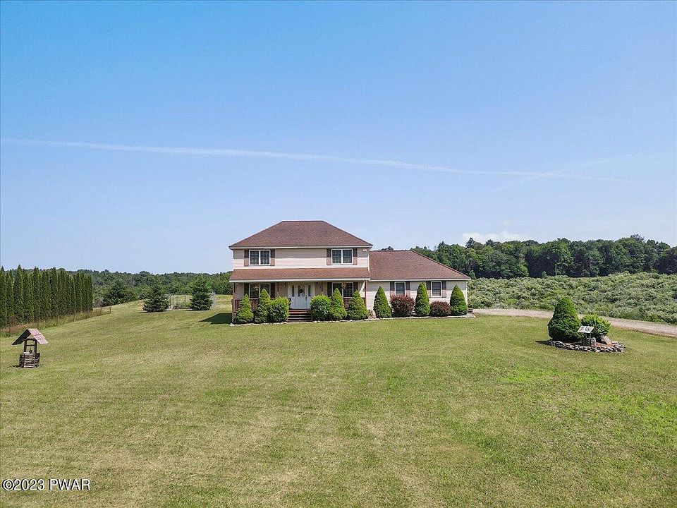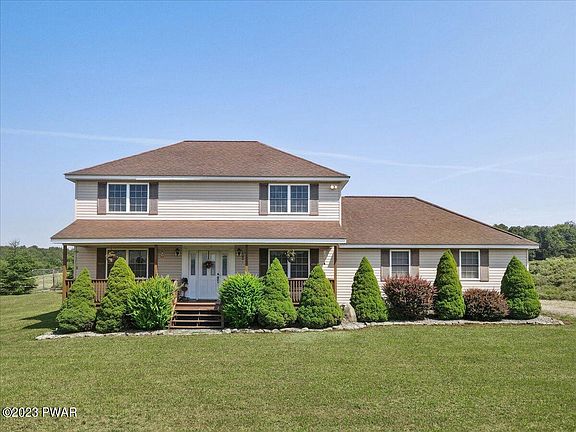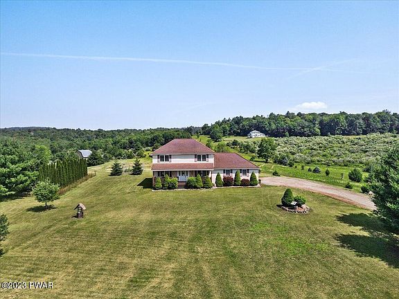 BREATHTAKING 360 degree VIEWS of Mountain Farm land LOCATION makes this VERY PRIVATE Secluded Country home on 10 acres more pleasurable to Relax here! Local quality custom builder designed each room to take in the views from sun up thru sunset. Take in the peace and tranquility relaxing on the covered rocking chair front porch and sun deck. The center entry hall provides access to the entire main floor with a beautiful stair case assent, Country Kitchen with center island, Living room propane fireplace, lower level ready for future family room and the attic storage is more bonus space. Pear, Peach, Cherry, Apple, & Blue spruce trees dot the landscape arrangement around the home site. A Very Clean immaculate home shows pride of ownership. The gently rolling acreage gives room to design,