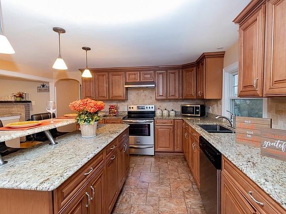 Charming 3 bed 1.5 bath ranch! Perfect for first time home buyers or those looking to downsize. This home offers a cozy living room with maple hardwood flooring, recessed lighting, and wood-burning fireplace, beautifully renovated kitchen with double-glazed, soft close, maple cabinets, SS appliances, backsplash, and 2 tier island. 3 bedrooms and 1 full bath with a double sink. The finished level provides a spacious family room and a half bathroom. Enclosed porch, one car attached garage plus paved off-street, recently done patio with grill and plenty of green back yard perfect for entertaining. Conveniently located within a short distance from shopping & restaurants.