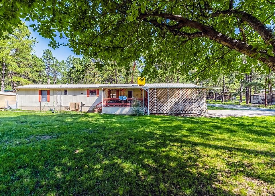 203 Guajolote is a 3 bedroom 2 full bath, 1985 single-wide manufactured home on approx 0.25 acre flat lot with storage shed. Metal roof, carport and covered front deck. Well kept and good condition. Enter into living room with guest bedroom and hall guest bath to the right. Kitchen off living room with breakfast bar, gas range, dishwasher, and walk in pantry/utility room with washer/dryer. Off kitchen is master bedroom with en-suite full bath. Faux painted sheet rock textured accent walls in master and living room. Some wood paneling. Water, sewer, and natural gas connected. Vaulted ceilings. Coleman forced air gas furnace & central evaporative cooling. Active title.