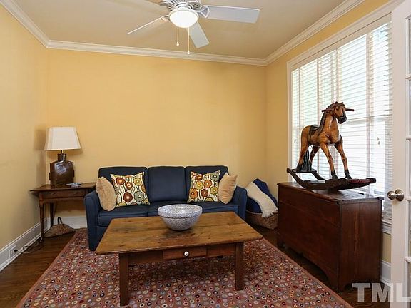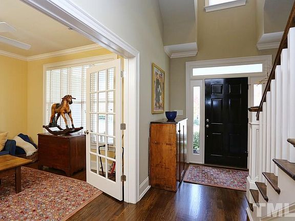 Charming well maintained quality built home w/ welcoming front porch & first floor master suite. Open floor plan. Gourmet kitchen w/granite countertops, SS appliances & Miele built-in coffee system. Breakfast room w/wall of windows opens to screen porch, deck & backyard with wooded views.Family rm has gas log fireplace. Dining room is being used as a living rm. Walk-in attic complete w/ sheetrock for future expansion.Excellent location close to I-40, Meadowmont,UNC Wellness Center, UNC, Duke & shopping.