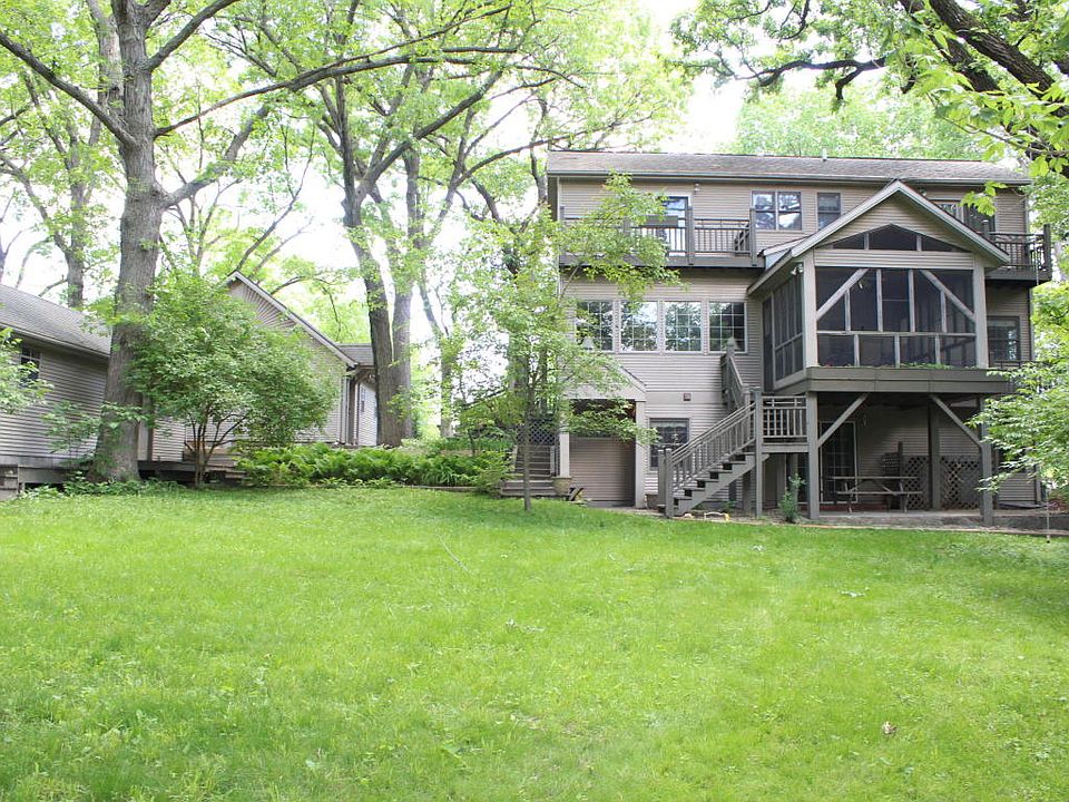 Fabulous wooded lot, tucked away in your own private setting. This 5 bedroom home is sure to please! With many great features, the open kitchen and dining rooms are great for entertaining. A four seasons porch off of the kitchen, with area for a wet bar. The living spaces on the main floor flow right into one another. There is a screened in porch off the main level, looking over the gorgeous yard with so many landscaping features and mature trees through the yard. The upper level has a full bath along with 3 bedrooms. 2 of the bedrooms have access to the wrap around deck. the lower level has three additional bedrooms and a grand family area with walkout to the yard. A spacious garage, and additional shed, plenty of room for a workshop.