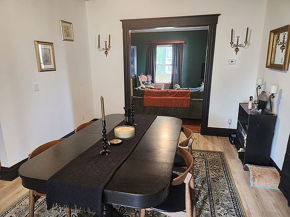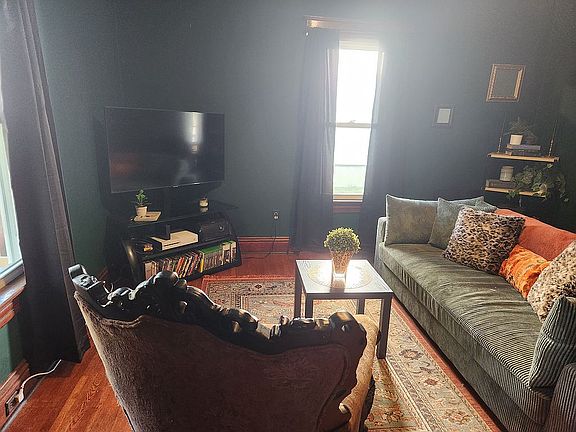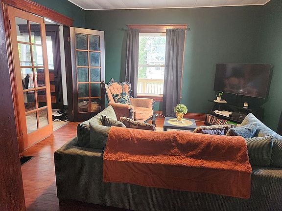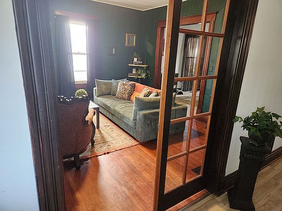 As you walk in the front door, a pair of original French doors to your left leads you into your living room. Through a beautiful double archway, you connect to the large and inviting dining room. In the back corner of your dining room, you can either look out the back door to a quaint mudroom back entrance, or turn to see the charming breakfast nook/coffee corner attached to the kitchen counter. In the kitchen, your brand-new energy efficient Samsung refrigerator, glass top induction stove, and cupboard mounted microwave. The built-in sprayer and dish soap dispenser at the double-basin sink makes dishes and cleaning a breeze. To your right, you will see the entrance hallway leading back to the front door, and to your left a door that leads to the basement. Upstairs, the room serving as an office is square, with a small but serviceable closet directly underneath the attic stairs. The left has a large closet on one end of the room, complete with built-in shelves. To the right of the room is a door leading to a small, window-enclosed outdoor porch area. The front bedroom is slightly larger than the office space, with a full closet. The bathroom around the corner, comes complete with a full bathroom storage closet.