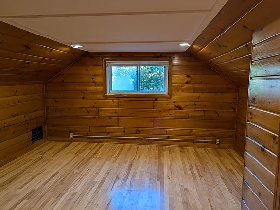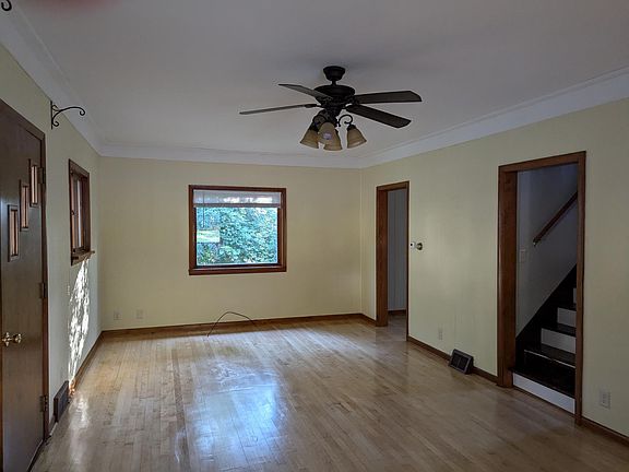 Ready to move into city home in a quiet west side neighborhood. This 2 bedroom, 2 bath 1 1/2 story home has maple floors through most of the main level and a lovely enclosed front porch. The spacious lot abuts a wooded, undeveloped area giving you extra privacy. There is a newer bathroom on the main level of the home, a small bedroom, kitchen, entry and comfortable kitchen. The upper level has a second full bathroom and a spacious bedroom with knotty pine walls and ceilings.