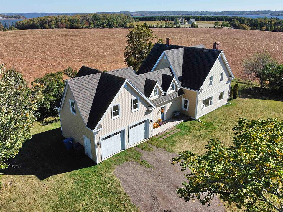 When Viewing This Property On Realtor.ca Please Click On The Multimedia or Virtual Tour Link For More Property Info. Wake up to sweeping water views and experience the perfect balance of country living and modern convenience. This beautifully renovated farmhouse sits on a spacious private lot surrounded by mature trees, with deeded access to the West River for kayaking, paddle boarding, or quiet evening strolls along the shore. Located just 5 minutes outside the town of Cornwall and 15 minutes outside of Charlottetown, enjoy the benefits of country living without the pitfalls of a long commute. Inside, 9-foot ceilings and gleaming hardwood floors create a bright, welcoming atmosphere. The main floor offers a spacious mudroom, full bath, laundry, a charming kitchen, and multiple living spaces—including a formal dining room, cozy den, and sun-filled living room. A unique touch is the two staircases leading to the upper level. The second level features four generously sized bedrooms, a full bathroom, plus a large bonus room. Over the double-car garage, nearly 600 sq. ft. of nearly finished space with 10-foot cathedral ceilings awaits your personal touch—perfect as a studio, office, or recreation room. With thoughtful updates throughout, this is a rare opportunity to own a home that truly has it all: character, comfort, water access, and proximity to town.