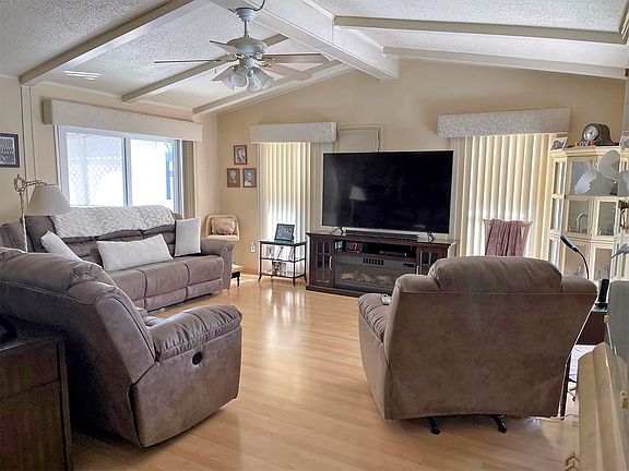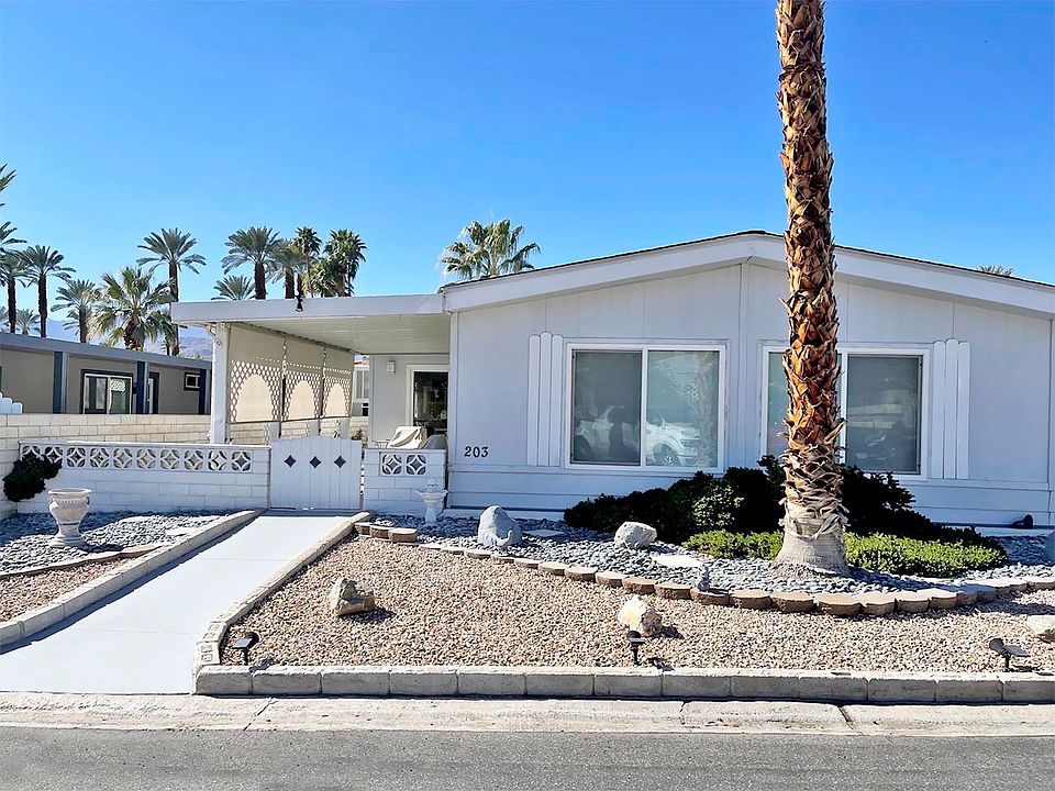 203 International Blvd is being offered for sale at $170,000 and it is well appointed and move in ready. Walking up the long extended driveway, the home boasts 3 sheds which are included with the home. Entering form the driveway into the Utility room where the Washer and Dryer are included, leads you directly into the bright and spacious living area. The living room provide easy access to the side patio and back area. The kitchen is very large and has a new fridge, double ovens and a gas stove top and eat in area. The primary bedroom and bathroom boast a 150 sq. ft. walk in closet, in ground tub and stall shower. All of the windows throughout the home have been replaced with new double paned vinyl windows. The home has a new sprinkler controller and security lights surround the home.
