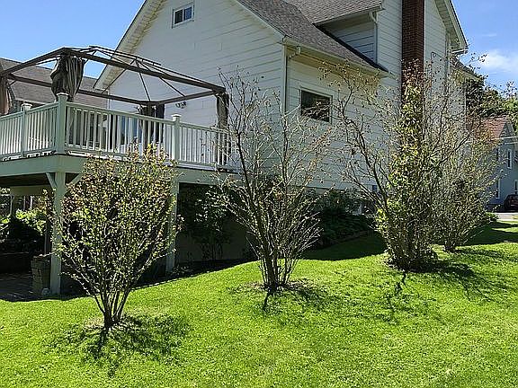 Well maintained 3 bedroom 1.5 bath home. Kitchen with plenty of storage, a stainless steel gas stove with center griddle, and a stainless steel dishwasher 2015. Kitchen has spacious eating area that overlooks deck. 1st floor laundry. Mud room front entrance. Side door goes out to covered part of deck. Patio below deck. Full size door going into basement from patio. Updates include: full tear off and new roof 2017. Central Air 2011, furnace 2011, HWT 2012, upstairs windows 2012, new drywall, stainless steel dishwasher 2015, all new counter tops 2015, Texas Tradition flooring installed all of downstairs 2015, all new interior paint 2015, Laminate upstairs with new stain master carpet in bedrooms 2015. All new electrical and meter going to house 2015. Bathroom remodel 2022. Low utilities. Beautiful rear deck that overlooks 18 mile creek for your enjoyment! If you like backyard privacy this house is for you. No houses behind you.