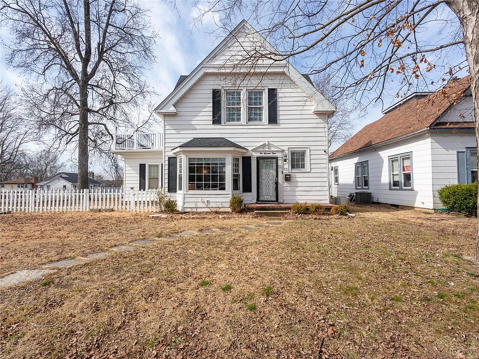 Charming 1.5 story home with 3 bedrooms, 1 ½ bathrooms and a large corner lot is has character galore! Entry foyer features a gorgeous wooden staircase and opens to the large Great room/ dining room combo. There is an oversized bay window in the great room and a gas fireplace. Kitchen has large center island and plenty of counter space the appliances stay including the refrigerator. There is a 1/2 bath off the kitchen and a main floor laundry. There is a large main floor bedroom/ office off of the great room. Making your way upstairs there is a full bath, a large bedroom, and a Spacious Master bedroom, with plenty of closet space and you can walk out onto the rooftop deck that is great for entertaining, sitting and enjoying the views. The home is situated on a large corner lot, w/ a fenced area, a 2-car detached garage, a new driveway and sidewalk 2024, and a new roof in 2023. This home has so much to offer! ** PROFESSIONAL PICS ON MONDAY 2-26