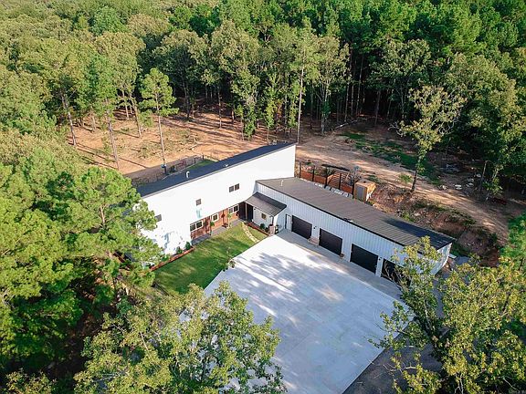 This stunning barndominium is located on 7.58 acres in the Mayflower school district in Faulkner County. The property features a 3153 sqft living space, 4 bedrooms, 2.1 bathrooms and a flex room within an open floor plan. The main level features your spacious living room, a dining room, and a kitchen with stainless steel appliances, laundry/mud room, master suite with a flex room attached. This property also has a 4 car garage, a storm shelter, mature trees, walking trails and fruit trees. Custom built barndominium with 30-year warranty on metal. Columns into ground covered with Chromium for lifetime termite repellant. Tankless water heater for fast, hot water on demand. Storm shelter for 6-8 people for added safety. 12-camera security system for peace of mind. 500-gallon propane tank for reliable heating and cooking. Fiber optic internet access for high-speed connectivity. Top-of-the-line appliances for energy efficiency. 2 electric panels and 2 HVAC units for split environment upstairs/downstairs.