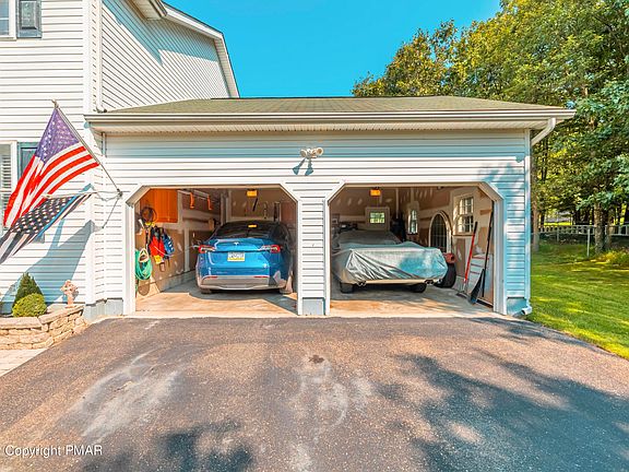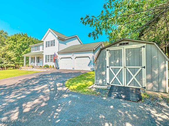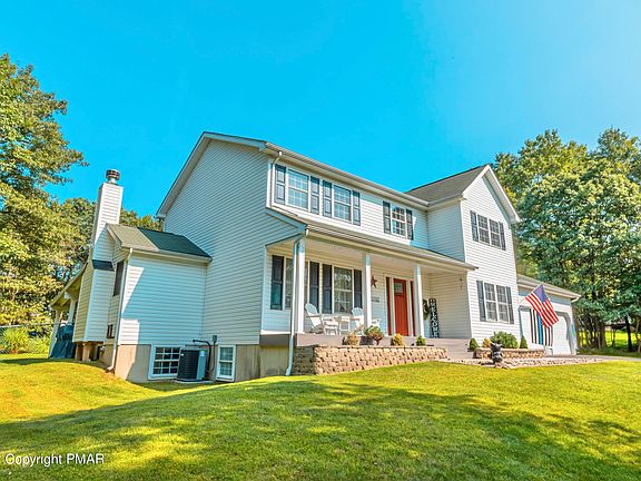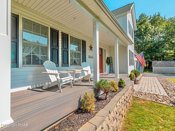 Like it's right out of a catalog! This stunning 4 br, 2 ba home with a 24' x 16' finished room in the basement sits on top of a mountain, nestled in the heart of the Poconos. If you like spending time outdoors and entertaining, this is the house for you! The backyard offers a 20' x 22' covered patio with an outdoor fireplace, a fully fenced in backyard, horseshoe pit, and fire pit. Inside you have an open floorplan with hardwood and tile flooring throughout. The kitchen offers all ss appliances and soapstone counter tops. A water filtration system was installed around 2019. It also has a 220V outlet installed in the garage to charge your electric car. You've got to see this one, schedule your showing asap! *Listing agent is a relative to the seller