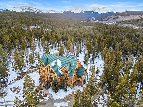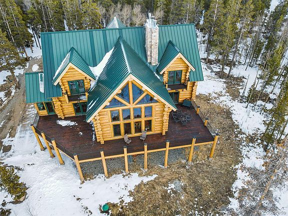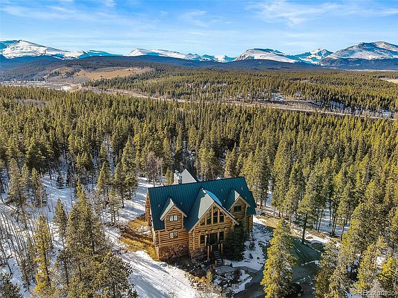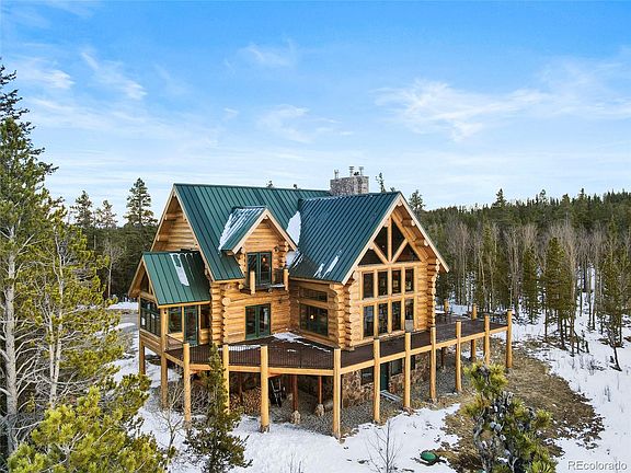 "It's kind of like walking into a Ralph Lauren catalog." We couldn't agree more. This stunning property isn't just a beautiful log-home creation, it's a work of art, born of the bounty of the forest that surrounds it. This private forest retreat is just minutes from Breck skiing, surrounded by Pike National Forest and close to White River National Forest, and completely secluded amidst pine, spruce and aspen. Less than two hours from Denver or Colorado Springs. Custom crafted from 16-inch British Columbian Spruce logs, this four-bedroom home really shows off the log construction from the beamed ceilings right down to the planked floors and log-hewn staircase. Well-maintained with fresh sealant and chinking in late 2021, new carpet inside and brand-new metal railings on the deck outside. The wide-planked floorboards in the main living areas were salvaged from ocean vessels but the views... those are all Colorado. You'll feel right at home here, starting from the impressive entry that opens up to the forest views, right down to snuggling into one of the four bedrooms, each with ensuite baths with soaking and jetted tubs and three with fireplaces or woodstoves. The main-floor living area and walk-out basement have their own fireplaces as well. The cozy kitchen has a huge gas stove with six burners and double ovens, plus a walk-in pantry and plenty of counter space to serve guests. The informal dining area is surrounded by windows with forest views. Outside the wraparound deck offers plenty of opportunities to soak in the views and unwind. But you may find that the best thing to do here is nothing at all. As John Muir put it best, “And into the forest I go, to lose my mind and find my soul.”