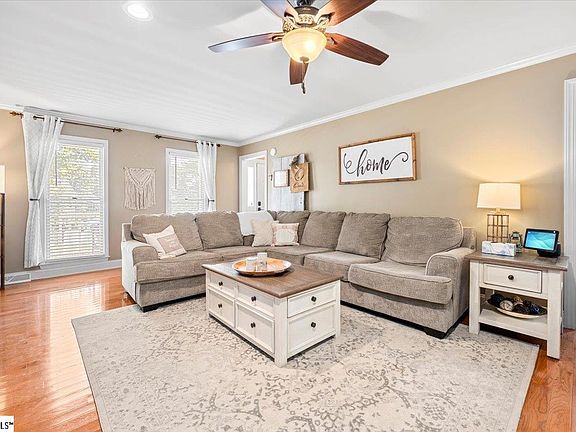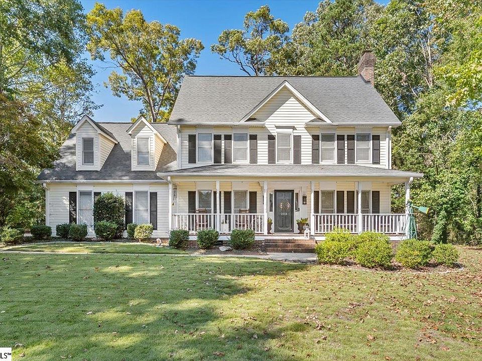 Charming Southern traditional home with 4 bedrooms and 2.5 baths, located in the sought-after Huntington North neighborhood on a quiet cul-de-sac in Easley. As you step inside, you’ll be greeted by an inviting open-concept living space, filled with natural light. The modern kitchen features sleek countertops, stainless steel appliances, and ample cabinetry, perfect for both everyday meals and entertaining guests. In addition, the layout is perfect for both family living and entertaining, with a formal dining room, a cozy den with a gas log fireplace, and a bright sunroom. A laundry room with shelving and cabinets, completes the first floor. Upstairs, you'll find four generously sized bedrooms. The spacious master suite boast of a private retreat, complete with a walk-in closet and an en-suite bathroom featuring dual vanities and a relaxing tub. One of the bedrooms can serve as a flex room. The expansive third floor provides even more flexibility with a closet, making it ideal as a fifth bedroom, home office, game room, home gym or craft room. Set at the end of a peaceful street, this home features a beautifully landscaped yard and a charming rocking chair front porch. The backyard is perfect for pets, kids, or hosting gatherings. Zoned for excellent schools and conveniently located near all that Easley has to deliver, this home has no HOA. Don't miss the opportunity to make this beautiful home your own!