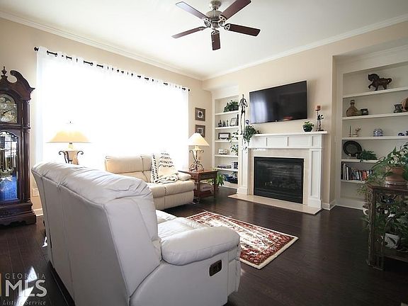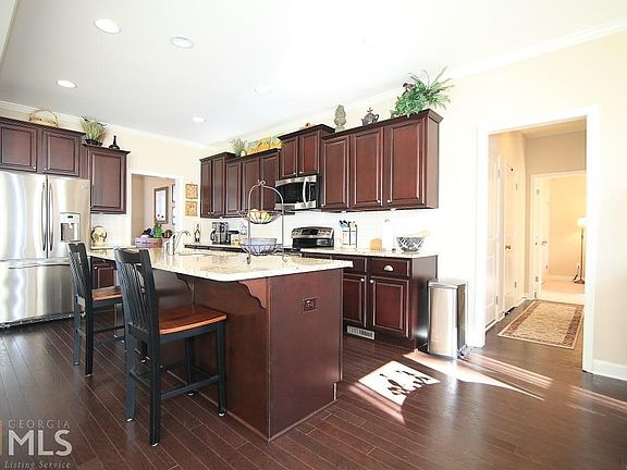 Southern living at it's best with rocking chair front porch. Lovingly maintained home. Enter into the foyer with hardwood floors that flow throughout the main level. Kitchen features a large island with granite countertop, stained cabinets, stainless steel GE Profile appliances, and breakfast area all open to the fireside family room. Guest suite on main level with en suite bathroom. Upstairs is the rec room/media room. Oversized master bedroom and three additional bedrooms. Full basement ready for you to add your personal touch. Extended patio off basement.