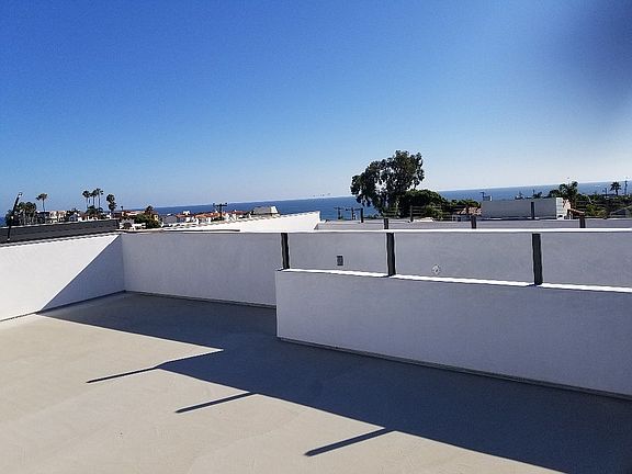 Unit A This is a 3-unit condominium home complex adjacent to the Pier Bowl. These beautifully designed homes are centrally located to take advantage of all downtown San Clemente has to offer. Take an evening stroll down the warm inviting main street of Avenida Del Mar and experience. Antique shops, specialty boutiques, art galleries, outdoor cafés, a weekly farmers’ market. Afterwards, wine and dine in the many world-class restaurants and pubs that line downtown San Clemente. Those feeling a little more adventurous can continue the stroll down Del Mar to the world famous San Clemente Pier and sip on a fruity Trestles Cocktail at The Fisherman’s Restaurant while experiencing one of most beautiful sunsets on the California Coast. The homes are designed in a Contemporary style.the Santa Barbara smooth stucco, and clean lines give the architecture a 21st Century postmodernism. The living area open onto charming patios and balconies with soft ocean breezes and breathtaking views. Perhaps the most spectacular “room” of all is the roof top deck overlooking beautiful blue water ocean views by day and spectacular sunsets and shimmering city lights by night. The floor plan for of Unit A (2104 sq. ft.) consists of 3 bedrooms and a family room, 3 full baths and a powder. Each home has a gourmet kitchen with quartz e counter tops and stainless-steel appliances. The kitchen easily flows into the dining and living areas. Creative use of the “upside down” floor plan (living areas on top) makes these wonderful homes for entertaining and family gatherings. As with all our floor plans, they are designed to be open and spacious. The most up to date selection of tiles, , cabinetry and material will be used to give each home a fun and contemporary feeling.