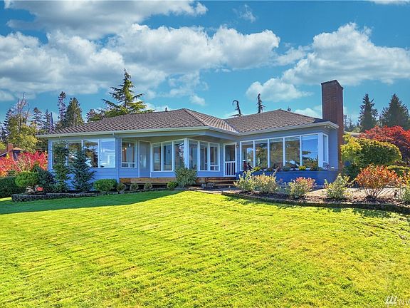 Amazing Views! Incredible view of Puget Sound & islands from Kitchen, drm, living rm, master bedroom, patio, fire pit & master deck.Vaulted ceiling in gourmet kitchen w/eating space, breakfast bar,gas cooktop,island,refinished hrdwd flrs,open to dining rm.Huge master suite w/5 piece master bath,marble everywhere,heated jacuzzi tub,large marble shower,beautiful glass doors & very large closet.Downstairs w/large frm,den,extra rm,3/4 bath,large utility rm,storage rm.Fish pond,bridge, patio & more.
