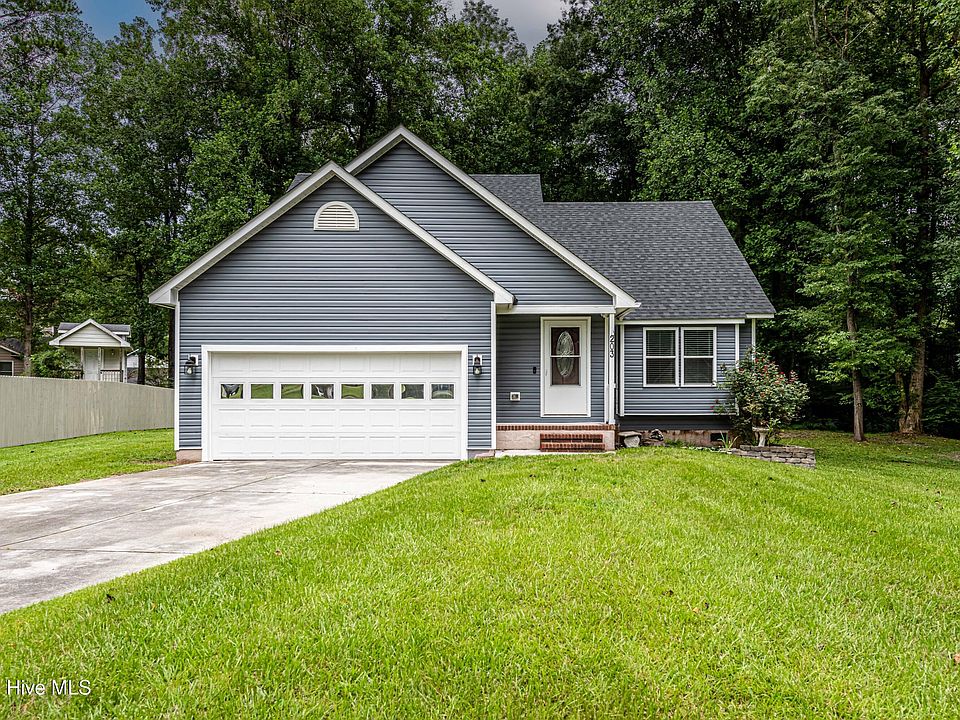 Welcome to this gorgeous 3 bedroom, 2 bathroom home with a 2 car garage and countless upgrades, it's truly turnkey! Situated at the beginning of a quiet cul-de-sac, this property offers no HOA, no city taxes, and no required flood insurance. Recent updates include a new roof in 2022, a full vinyl siding wrap in 2023, a new living room window in 2021, and all other windows and doors replaced in 2023. Inside, the kitchen boasts beautiful quartz countertops, while the dining area provides additional cabinetry and overlooks the private backyard. A vaulted ceiling enhances the living room, and a dual-zone HVAC allows separate temperature control upstairs and down. The first floor primary bedroom features a walk-in closet, separate dual vanities, a soaking tub, and a separate stand up shower. New LVP flooring flows throughout the downstairs. Close to MCAS, other bases, shopping, local amenities and just 30 minutes to area beaches; this home has so much to offer! Schedule your showing today to experience it in person; appointments are quick and easy to arrange!