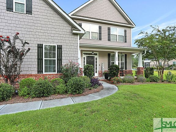 In Rincon's sought-after Kate's Cove, find a stunning home with a private pool sanctuary. Boasting 5 bedrooms and 3 baths, it features a first-floor guest suite. A grand double-height foyer and formal dining greet you. The open-concept main floor combines living space and kitchen. Notable upgrades: fireplace, granite kitchen and master counters, stainless gadgets, tile accents, hardwood floors, sheltered rear patio, side garage entry. The expansive backyard has a bespoke pool, fire pit, privacy fencing, lush plantings, and extended patio space. Nestled in the acclaimed Effingham school zone.