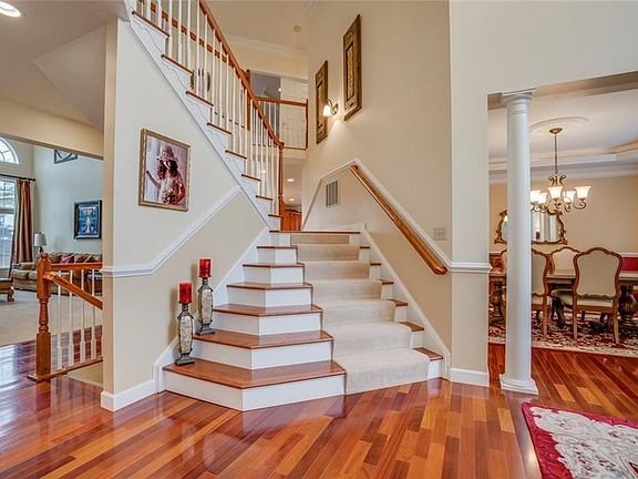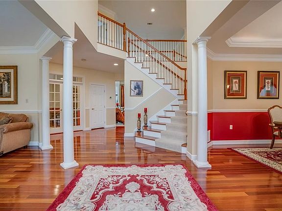 Custom build in highly sought-after Peters Twp. The entry is impressive as you walk onto gleaming hardwood floors & are greeted by a grand split staircase. The flow takes you beyond the beautiful living rm & dining rm w/ bay window, crown molding, chair rail, & tray ceiling past the double doors to the den & powder room the 2-story great room explodes into view w/ stone fireplace & natural light bursting through Palladian windows. The expansive kitchen area slides into view w/ massive morning room, peninsula island, island, SS appliances, custom cabinetry, & lots of granite counterspace. The 2nd level master suite w/ dual walk-ins, sitting room, tray ceilings, master bath w/ double vanities, soaker tub, tiled shower, & water closet. 3 more massive bedrms 2 full baths round out the 2nd level. The lower level game room is gigantic w/ gas fireplace & wet bar. Theater room w/ high end video/audio equipment, & full bath, exercise & storage rms cap off the LL. 3 car garage & FLAT backyard!