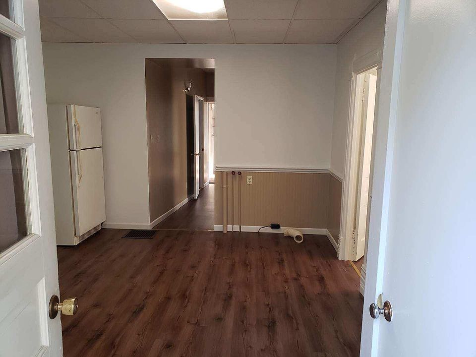 fresh complete paint ceilings and walls, new living room carpet, New plank flooring in kitchen, hall way and bathroom. New dishwasher and microwave. Ceiling fans in bedrooms. Each bedroom has large closets plus closet in kitchen. ! car garage and small outside porch. Just blocks away from food, pharmacy and a park. Heat, water and sewer furnished. Small dog or a cat may be allowed