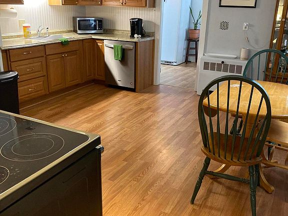 This warm and attractive home offers a kitchen with updated cabinets, contemporary appliances, new flooring, and a cozy eat in area.