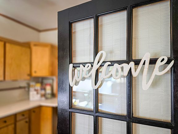 The updated bathroom features a new vanity, double sinks and stylish fixtures, with direct access to the primary bedroom. A second bedroom offers flexibility for a guest room or home office. The rear entry/mud room provides generous storage for coats, shoes, and more, leading out to newly poured walkways and a detached garage with a new concrete floor and lots of parking and storage options.