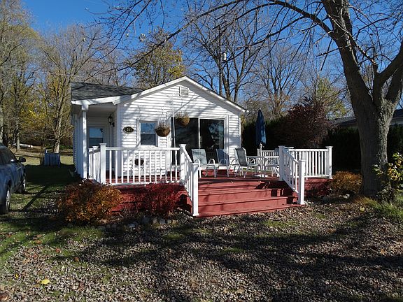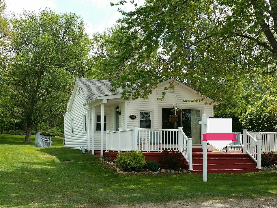 Gorgeous 2 bedroom cottage. Lake Frontage. Large deck in front, concrete pad in back. Full size storage shed.