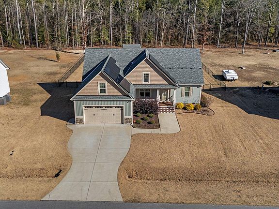Welcome to this beautifully crafted home built in 2021. This open-concept, split floorplan offers something for everyone! Enjoy the upgraded trim and finishes throughout, a cozy living room with gas logs and a stunning stone surround, and a separate dining room perfect for gatherings. The first floor owner's suite is a must have with a garden tub, separate shower, and a spacious walk-in closet. Two additional bedrooms on the main level offer options for a main level office as well. Upstairs, you'll find an oversized bedroom with its own loft and full bathroom—perfect for guests or teens! The additional massive recreation room is a versatile space, ideal for a theatre, game room, or the ultimate bonus room! Step outside to relax on the screened porch or grill on the deck while enjoying views of the big, flat fenced backyard. A 10x16 shed with double entry and a center wall is ready to store all your essentials. With thoughtful upgrades like an encapsulated crawlspace with a dehumidifier, solar panels, upgraded landscaping, custom blinds, ceiling fans, gutters, storm doors, and more, this home truly has it all! Great commuter home as it is under 20 miles to I 95 and 30 miles to RDU airport! Come see for yourself and fall in love—schedule your tour today!