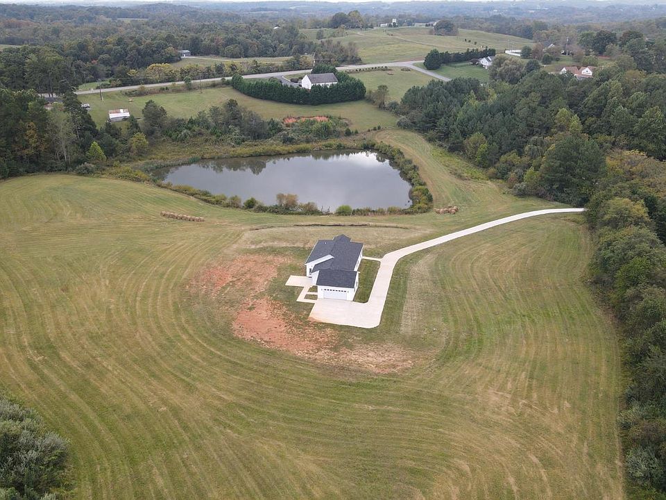 This is the Home Sweet Home you have been waiting for! A long concrete driveway takes you to this charming country home on 11.36 acres with your own private pond. Similar to a Southern Living award winning floor plan, you will love the openness and entertainment friendliness of this layout offering main level living. Large roomy entry welcomes you into this beautiful home. Great room is open to a fabulous kitchen with lots of soft close cabinetry. Just off the kitchen is the dining room overlooking your very own pond. Spacious primary bedroom has walk-in closet and bonus closet. Primary bath offers large walk-in tile shower and walk-in tub. Additional two bedrooms are perfectly situated with privacy from primary bedroom. Beautiful hardwood floors thru out. Unique light fixtures. Large laundry room off oversized 2 car garage. Outdoor patio off of great room. Views from all windows. Best pond ever just waiting for you to grab your pole and go fishing! 10 mins from Bedford and Forest!